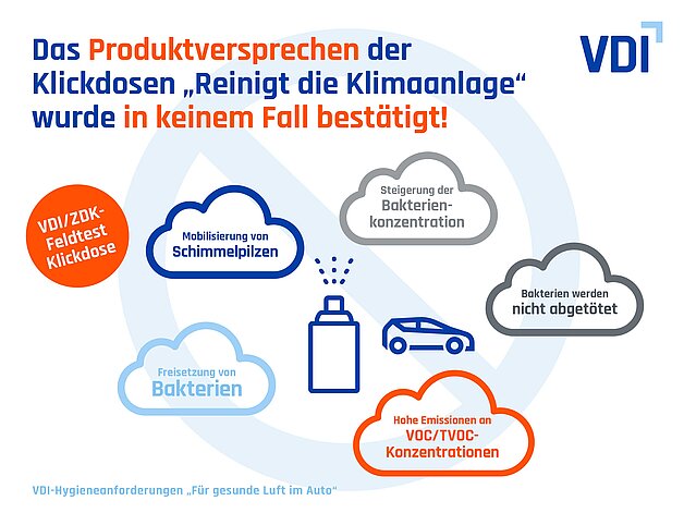 Wie wir zeigen konnten, sind auch die oft genutzen und stark beworbenen Klickdosen ungeeignet, um eine hygienische Reinigung der Autoklimaanlage zu gewährleisten. Darum ist es dringend nötig, auch das Werkstattpersonal für dieses Thema zu sensibilisieren und entsprechend zu schulen.