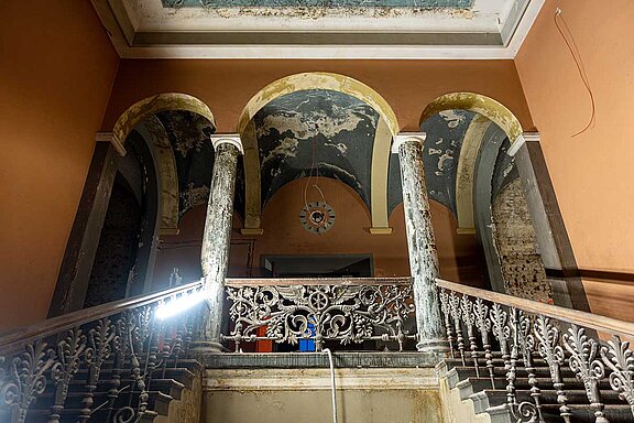 Eine besondere Herausforderung für die Sanierung stellt der Denkmalschutz dar. Viele Gebäudeteile, wie etwa die Pförtnerloge am Osteingang, wurden von der zuständigen Behörde als erhaltenswert bewertet. Nicht alles lässt sich jedoch wieder in den Urzustand zurückführen. „Die historische Decke am Eingang Ost war nicht mehr rettbar, wird jedoch auf Basis eines 3D-Laserscans originalgetreu rekonstruiert“, schilderte Erös.