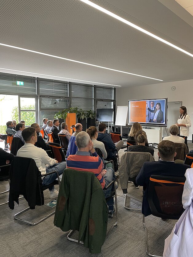 Aline Möhrle, Leiterin Human Ressources, stellte das Unternehmen und seine Produktpalette vor und präsentierte die attraktive Firmenkultur sowie spannende Maßnahmen, um neue Mitarbeiter:innen für sich zu gewinnen.