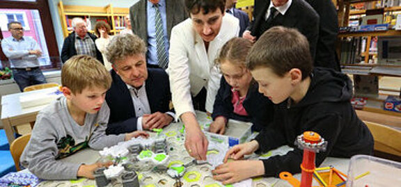 Bei allen Angeboten ist es uns ganz wichtig, Freude und Begeisterung in den Kindern und Jugendlichen für MINT-Themen zu wecken. Sie sollen sich in entspannter Atmosphäre ohne (Noten-)Druck in die Materialen vertiefen und so eine intrinsische Motivation in sich entwickeln können. Dabei stellt die Kinder- und Jugendbibliothek den idealen Partner dar. Denn fast jedes Karlsruher Grundschulkind besucht mindestens einmal mit der Schulklasse die Bibliothek und lernt damit die TechnoTHEK kennen.