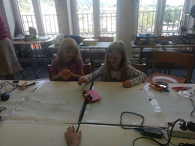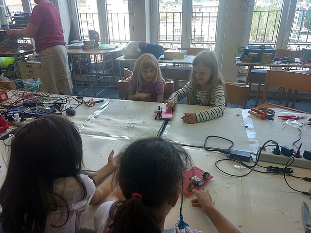 Die Mädchen können in der Ideenwerkstatt Kreativität mit Technik verbinden. Sie haben Gelegenheit, beim selbstständigen Ausprobieren, Experimentieren und Forschen ihre technischen Talente zu entdecken und weiterzuentwickeln. Nebenbei erlernen sie den Umgang mit Werkzeugen und Geräten und trainieren handwerkliche Fähigkeiten. Sie malen elektrifizierte Bilder (LED-Bilder) oder planen und konstruieren kleine Roboter, beschäftigen sich mit dem 3D-Drucker und erstellen Erklär-Videos mit Lego LeMints. Das jetzt ausgearbeitete Workshop-Format findet man als jeweils ausgewiesene einzelne Aktivität in unserer