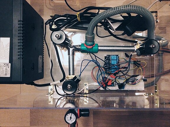 Jetzt haben 22 von ihnen wochenlang digital vernetzt an einem Strang gezogen, Grundlagen recherchiert, Kontakte zu Krankenhäusern, Intensivmedizinern und Ärzten aufgenommen und die Komponenten unter Nutzung von Normteilen zusammengestellt. Die Hauptmodule ihres Beatmungsgeräts bestehen aus einer Standard-Krankenhaus-Maske, einem Adapter, einem Normanschluss beispielsweise für einen Kompressor, Sensoren und elektrisch angesteuerten Ventilen.