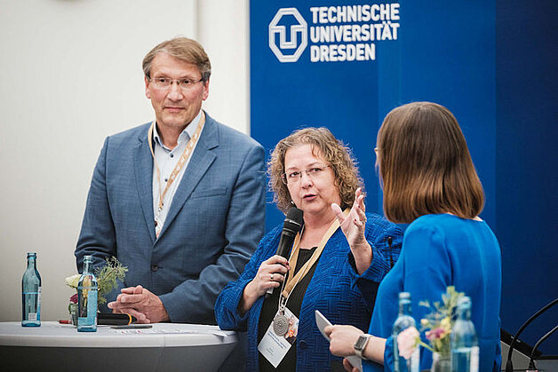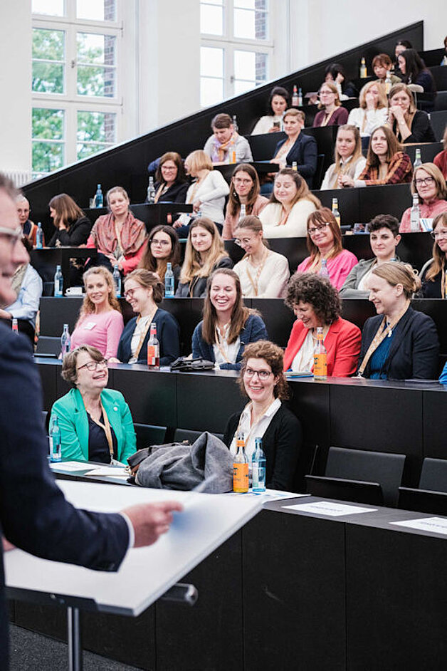 Nach der Eröffnung durch die Vorsitzenden des Netzwerks, Prof. Dr.-Ing. Burghilde Wieneke-Toutaoui und Dr. Melanie Thaler, sowie Prof. Dr. Roswitha Böhm, Prorektorin Universitätskultur TU Dresden, Prof. Dr.-Ing. Michael Beckmann, Dekan Maschinenwesen der TU Dresden und VDI-Direktor Adrian Willig, schworen die Keynote-Speakerinnen die Teilnehmerinnen auf die Chancen und Potenziale der Veränderung ein.