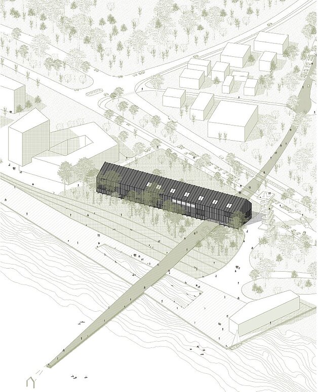 Poetisch und unter behutsamer Einbeziehung der komplexen Situation vor Ort ist hier ein Gebäude (für die Zukunft) gelungen, welches der Geschichte des Ortes gerecht wird. Der städtebauliche Entwurf mit buchstäblichem Weitblick und Wasserzugang macht das Projekt so besonders und zeugt von einem tiefen Verständnis des Teams von Integration und Zirkulation. Das Entwurfs-Motto „Touch the Earth lightly“ bewegt und schlägt sich in der Designsprache sowie in der Baukonstruktion nieder. Das relativ niedrige, etwa 120 Meter lange Gebäude steht in einem respektvollen Gegenüber zum vorhandenen Aussichtsturm und bildet mit diesem zusammen ein spannendes und kontrastreiches Ensemble. Das Materialkonzept ist sehr gut durchdacht und sieht nachhaltige, regionale Baustoffe vor. Die Pergola schafft einen beeindruckenden Innen-/Außenraum.
