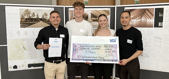 Das Preisgeld von 2000 € geht an das Team der Uni Stuttgart: David Schwarz, Annabelle Hoffmann, Arina Nicoleta Niculescu, Cheuk Hang Trevor Lau, Farell Eyerdam