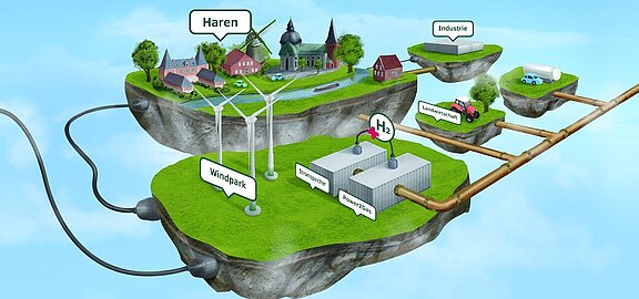 Für die Feldbewirtschaftung kann die Verwendung des alternativen Energieträgers Wasserstoff, im Gegensatz zu konventionellen Kraftstoffen wie Diesel, in landwirtschaftlichen Maschinen einen entscheidenden Anteil zur Dekarbonisierung dieses Sektors beitragen. Dazu soll das vom Land Niedersachen geförderte Verbundprojekt H2Agrar pilothaft zeigen, wie eine dezentrale Wasserstoffwirtschaft gestaltet werden kann. Dabei wird die gesamte Wertschöpfungskette betrachtet: von der Erzeugung von regionalem grünem Wasserstoff über die Verteilung bis zur Anwendung in einem Brennstoffzellen-Traktor. Als Modellregion wurde der Standort Haren (Ems) im Landkreis Emsland ausgewählt. Dieser bietet durch ein stark landwirtschaftlich geprägtes Umfeld und einen lokalen Windpark gute Voraussetzungen, das entsprechende Potenzial der alternativen Antriebstechnik im Zusammenspiel mit einer lokalen Wasserstoffwirtschaft zu erproben.