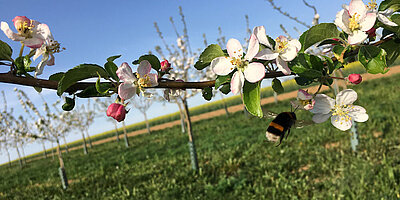 Durch die inzwischen starken, witterungsbedingten Schwankungen ist der Zeitpunkt für Aussaat, Düngung und Ernte nur noch bedingt im Voraus planbar - der Klimawandel verlangt der Landwirtschaft von heute und morgen mehr Flexibilität und Risikobereitschaft ab. Mit einer angepassten Frucht- und Sortenwahl kann erfolgreich auf die klimatischen Veränderungen reagiert werden. So beugt eine späte und robuste Apfelblüte dem gestiegenem Spätfrostrisiko vor, trockenheitstolerante Getreidesorten kommen besser mit der geringeren und schwankenden Wasserverfügbarkeit zurecht. Zusammen mit konservierenden Bodenbearbeitungsmaßnahmen und Versuchen, den Humusgehalt aktiv zu erhöhen, soll die Bodenfeuchte maximal gehalten und ausgenutzt werden.