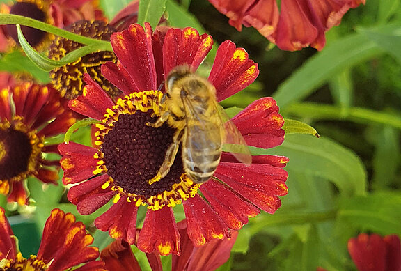 Besonders eindrucksvoll sieht man diese Veränderungen auch an unseren Wäldern. Während in den gemäßigten Breiten vor allem flachwurzelnde Bäume wie Fichten und Tannen unter der zunehmenden Trockenheit leiden und großflächig absterben [4], wird in Gebirgen beobachtet, dass sich die Baumgrenzen nach oben verschieben [5]. Aber auch an unseren Wildpflanzenarten geht dieser Wandel nicht spurlos vorbei. Verbreitungsgebiete und Blütezeiten von Wildpflanzen verschieben sich, oft mit gravierenden Auswirkungen auf das ökologische Gesamtgefüge, welche bisher erst rudimentär erforscht sind [6]. Beispielsweise schlüpfen viele Bienenarten im Frühjahr zu der Zeit, zu der ihre Nahrungspflanzen zu blühen beginnen. Da sich durch die Klimaveränderung die Blütezeit verschiebt, sind die entsprechenden Pflanzen oft schon verblüht, wenn die Wildbienen schlüpfen. Mit entsprechenden negativen Folgen für beide Seiten, denn die Bienen finden keine Nahrung und die Pflanzen werden nicht bestäubt.