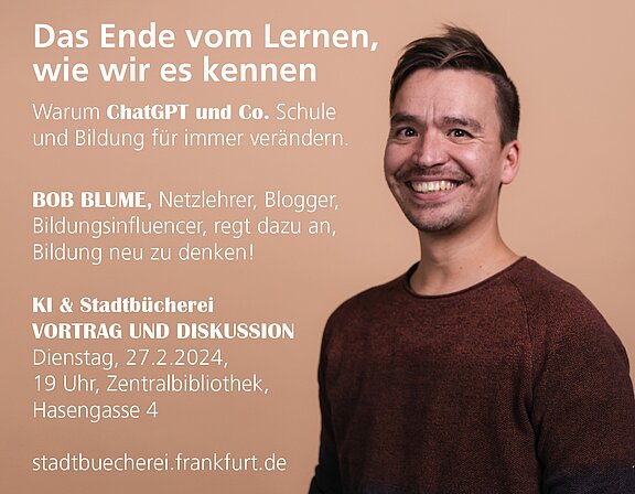 Bob Blume, Lehrer, Autor und Blogger, behauptet: Das Lernen, wie wir es kennen, ist vorbei! Wir müssen uns neu erfinden, damit das maschinelle Lernen nicht dafür sorgt, dass wir uns überflüssig machen. Das gilt für Lehrer*innen und Schüler*innen. Der Vortrag bietet mehr als einen Überblick: Er regt dazu an, Bildung neu zu denken.
