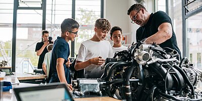 Nach dem gemeinsamen Auftakt startete das Workshop-Programm der Unternehmenspartner. Beispielsweise erhielten alle Interessierten bei Clarios praktische Einblicke in die Batterietechnologie für Personen- und Nutzfahrzeuge. Dabei ging es nicht nur um technische Grundlagen, denn die Teilnehmenden konnten Materialien einer 12-Volt-Batterie selbst untersuchen und diskutierten Aufbau und Funktionsweise. Ergänzt wurde der Workshop durch praxisnahe Impulse zum Thema Personal Branding.
