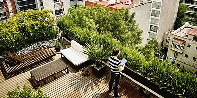 Bauen bedeutet stets einen Eingriff in die Natur. Deshalb ist es wichtig, dabei Artenvielfalt und den Erhalt von Lebensräumen zu berücksichtigen. „Biodiversität entspringt nicht nur dem Engagement einzelner Bauträger oder lokalen Projekten, sondern ist ein bedeutender Teil der EU-Gesamtstrategie für eine nachhaltige Entwicklung“, schildert Martin Hoffmann weiter. Ein weiterer Aspekt: Die Unterstützung eines gesunden Mikroklimas durch planerische Maßnahmen, um etwa Hitzezonen in innerstädtischen Vierteln entgegenzuwirken, indem Grünanteile erhöht werden. Mutige Architektur sei in der Lage, daraus positive Geschichten zu generieren, führt Hoffmann weiter aus: „Wenn wir zum Beispiel sagen können, dass wir mit einem Neubau Nistmöglichkeiten für Mauersegler oder Falken geschaffen haben, ist das ein emotionaler Mehrwert, der das Gebäude auszeichnet.“
