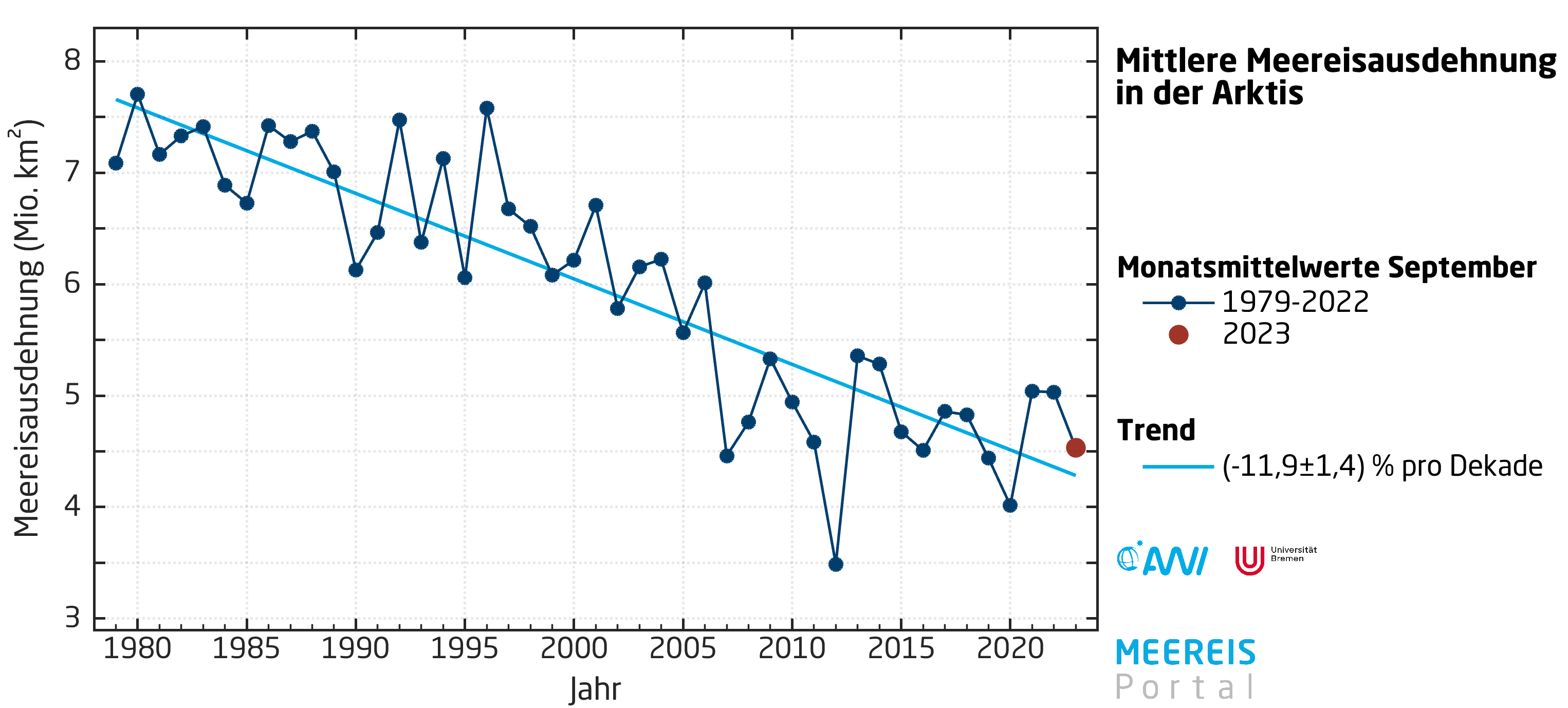 Das Nordpolarmeer ist derzeit noch ganzjährig von schwimmendem Eis bedeckt, wenn auch im Jahresverlauf nicht gleichmäßig. Doch die Lücken werden immer größer. Der Weltklimarat (IPCC) fasst in seinem aktuellen, sechsten Sachstandsbericht zusammen, dass die Durchschnittstemperatur dort in den vergangenen 100 Jahren fast doppelt so schnell gestiegen ist, wie im globalen Mittel. In der Folge ist das arktische Meereis im Winter durchschnittlich um mehr als zwei Prozent pro Jahr geschrumpft, in den Sommermonaten sogar um rund sieben Prozent. Jedes Jahr schrumpft die Eisfläche um fast 90.000 Quadratkilometer, besonders betroffen ist die Nordpolarregion. Klimamodelle des IPCC kommen zu dem Ergebnis, dass in der zweiten Hälfte des 21. Jahrhunderts das arktische Meereis im Spätsommer fast vollständig verschwinden wird. Der Kipppunkt steht also kurz bevor oder ist bereits überschritten. Das arktische Wintermeereis – ein beunruhigender Favorit unter den sichtbaren Zeichen des Klimawandels.